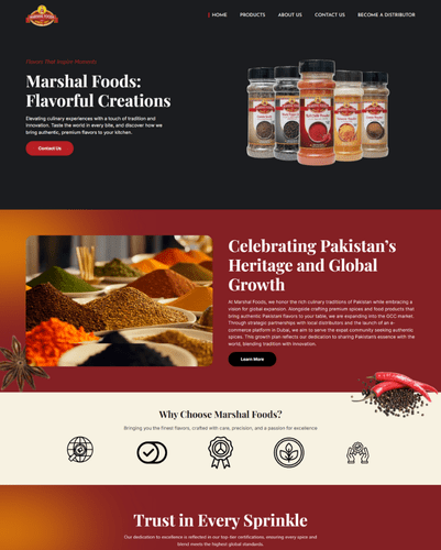 Marshal Foods ist eine traditionsreiche Gewürzmarke seit 1957. Wir haben eine informative Produkt-Website entworfen, die die Qualität und Vielfalt ihrer Gewürzprodukte wie Chilipulver, Kurkuma und Kreuzkümmel ins Zentrum stellt.