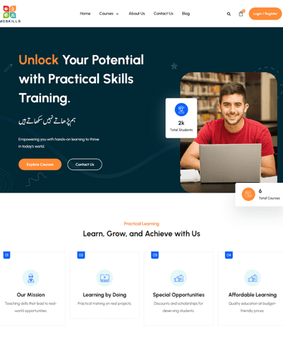 Für Moskills wurde eine ansprechende Website für Online-Bildung erstellt. Sie bietet Kurse, Lernressourcen und eine strukturierte Benutzerführung. Die Plattform ist übersichtlich gestaltet und auf Lernerfolg optimiert.